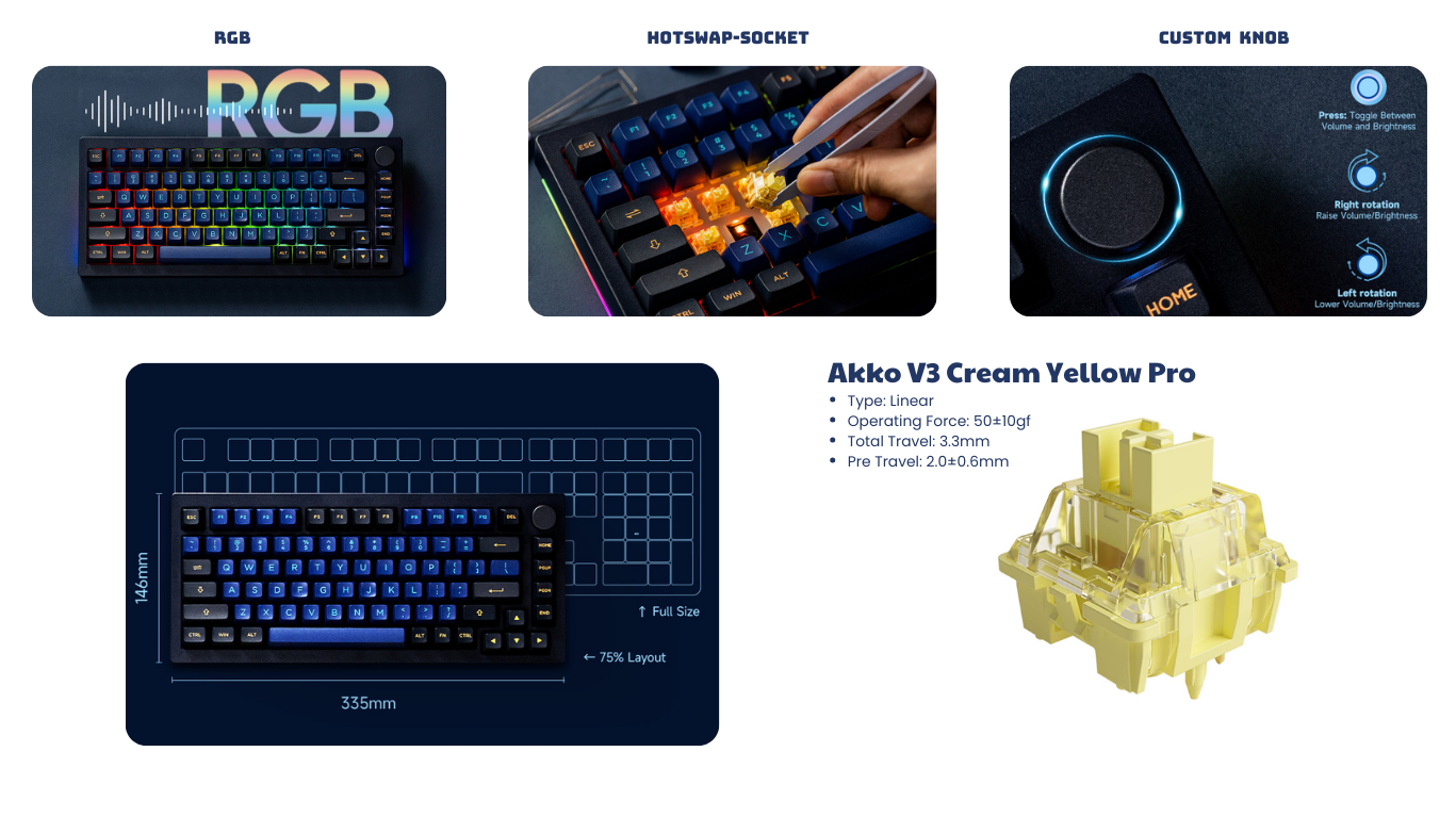 - Loại switch: AKKO Switch v3 ( Cream Yellow Pro)