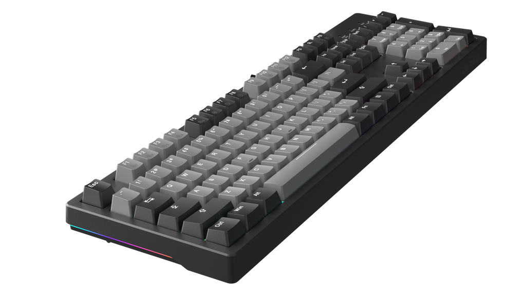 Thiết kế layout 104 phím tiêu chuẩn, mang lại sự đầy đủ cho mọi nhu cầu từ chơi game, nhập liệu cho tới thao tác văn phòng. Phần keycap được làm từ nhựa PBT double-shot, sử dụng profile OEM quen thuộc, mang lại cảm giác gõ chắc chắn, không bị mòn chữ sau thời gian dài sử dụng.