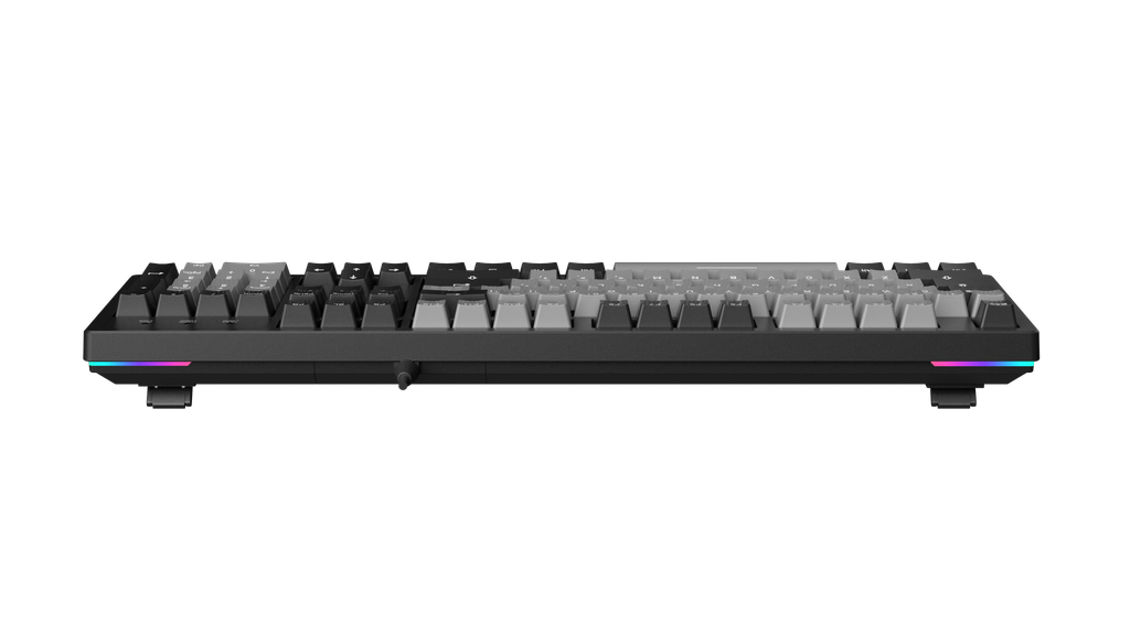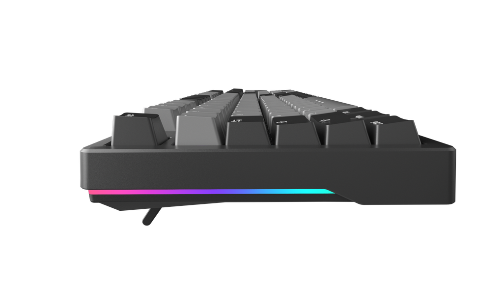 Ngay từ cái nhìn đầu tiên, EK104 PBT Grey Black gây ấn tượng với phối màu xám - đen đậm chất gaming cổ điển, kết hợp cùng hai dải LED RGB strip hai bên hông giúp tăng hiệu ứng ánh sáng rực rỡ mà vẫn tinh tế. Dải LED này tạo nên điểm nhấn thị giác độc đáo, đặc biệt bắt mắt khi kết hợp cùng hiệu ứng multi LED nhiều màu ở từng phím.