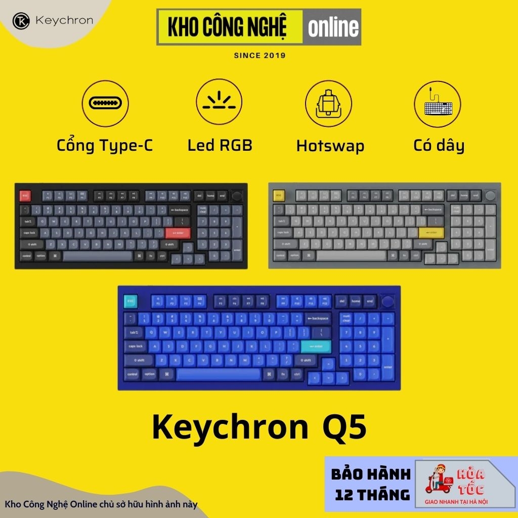 Keychron Q5 là bàn phím cơ có thể tùy chỉnh mọi thứ để nâng cao trải nghiệm gõ của bạn. Với layout 96% nhỏ gọn nhưng vẫn giữ lại đầy đủ các phím chức năng cũng như phím số, phần khung được gia công bằng nhôm gia công CNC chắc chắn, thiết kế double-gasket và hỗ trợ QMK / VIA. Keychron Q5 được thiết kế để mang cho bạn sự thoải mái và trải nghiệm cao cấp khi gõ phím. Keychron Q5 là sự lựa chọn hoàn hảo cho những người yêu thích layout full-size.