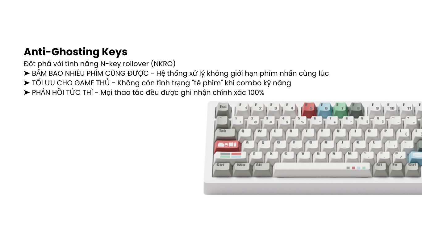 - N-Key Rollover: Hỗ trợ phím không xung đột