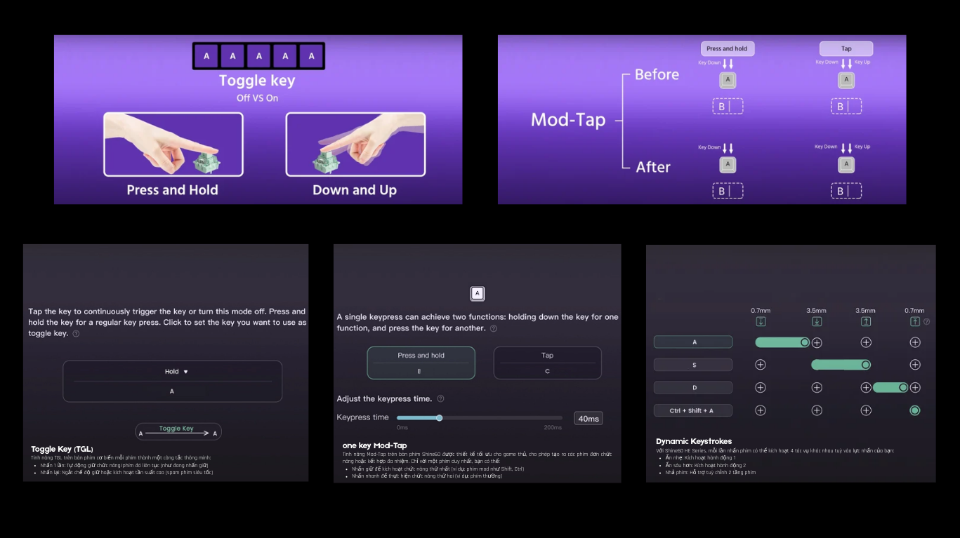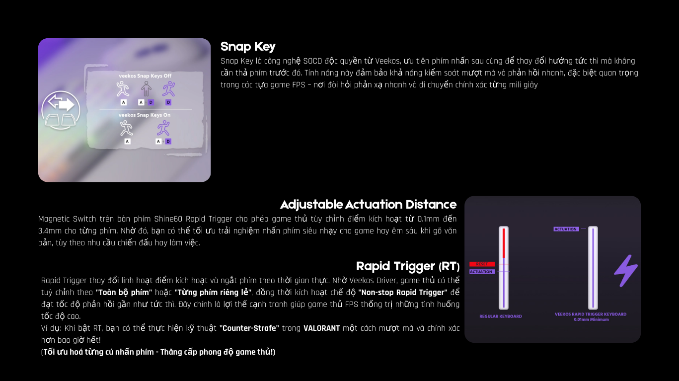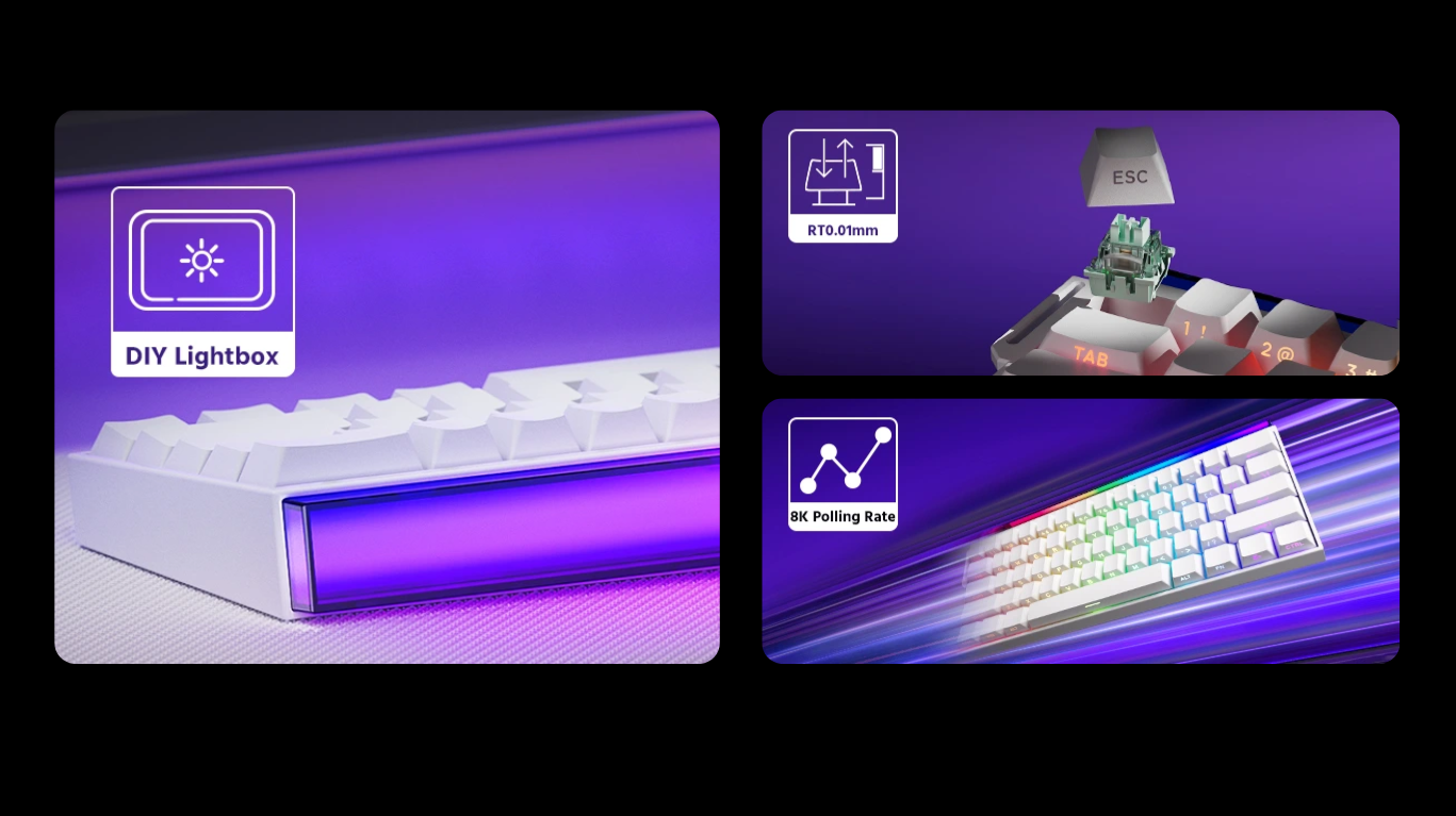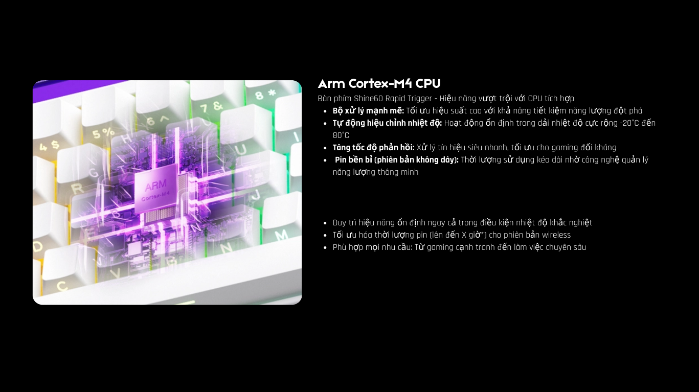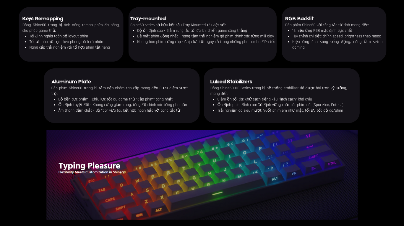 - Vỏ + Phím: PBT Shine-through + ABS
