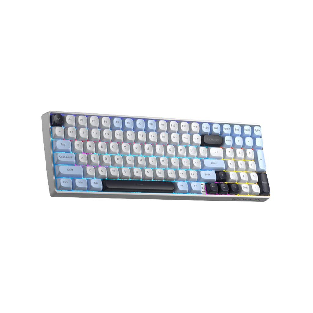 Bàn phím AULA S100 PRO TM sở hữu thiết kế hiện đại và tinh tế với sự kết hợp giữa màu xanh dương, trắng và tím đậm. Với kích thước nhỏ gọn, bàn phím máy tính này dễ dàng phù hợp với nhiều không gian làm việc hoặc chơi game.