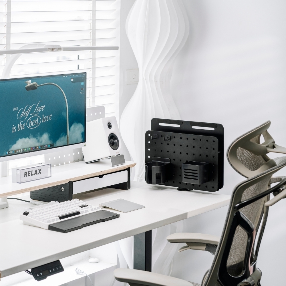 Tự do bố trí các phụ kiện đi kèm như giá để ly, giá để bút, móc treo tai nghe, cuộn băng keo hay dây cáp. UPGEN Workflow cho phép bạn biến bảng treo thành “trợ lý cá nhân” đúng nghĩa.