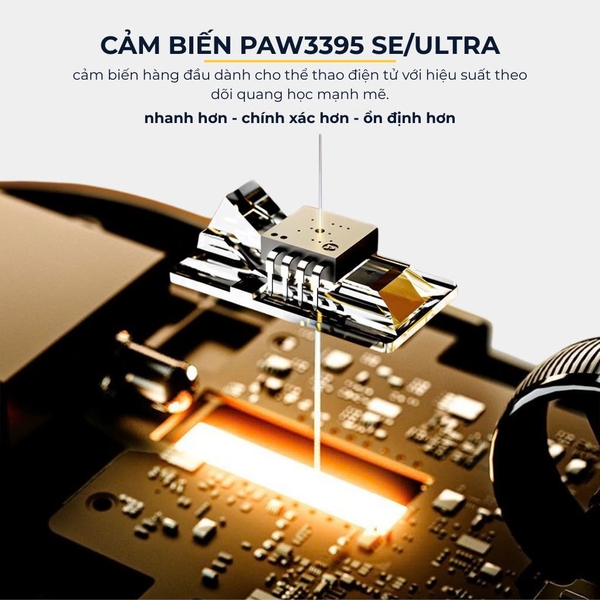 Cảm biến cao cấp: Sử dụng cảm biến PAW3950 Ultra hoặc PAW3395, đảm bảo độ chính xác và tốc độ phản hồi vượt trộ