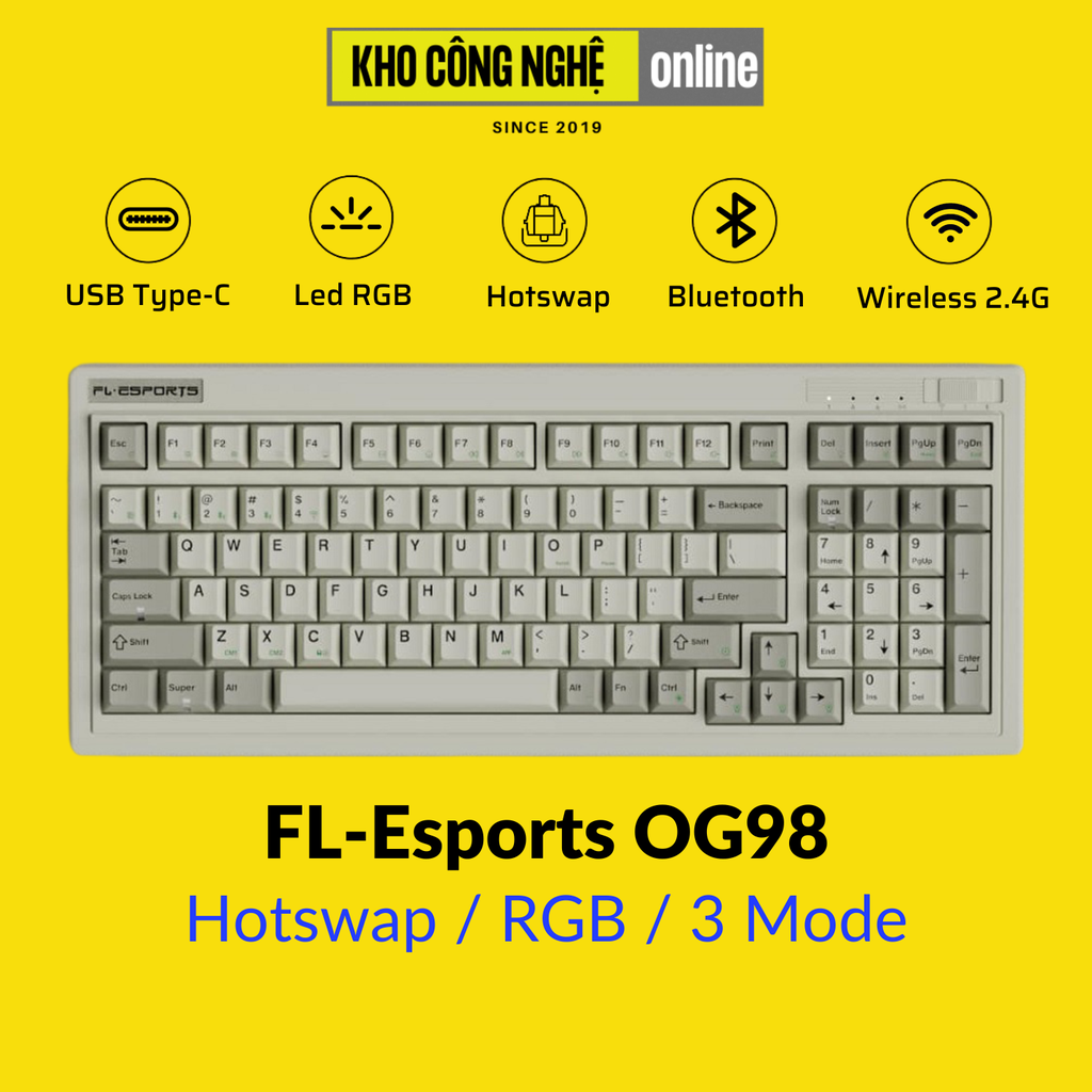 Bàn phím cơ FL-Esports OG98 3 Mode (Mạch Xuôi / Hotswap / Led RGB)
