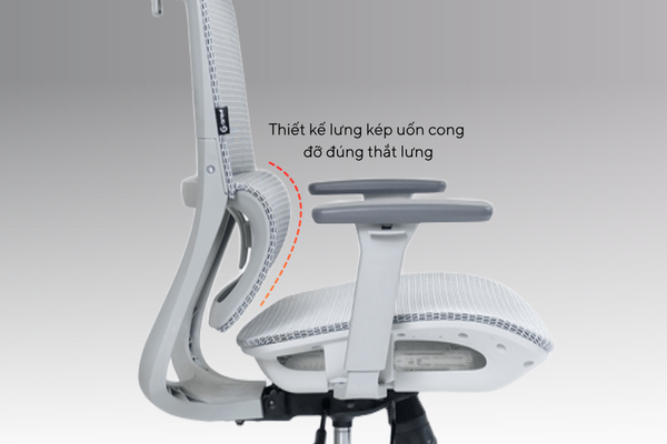 Tựa lưng kép với phần đỡ lưng dưới cong đỡ đúng thắt lưng
