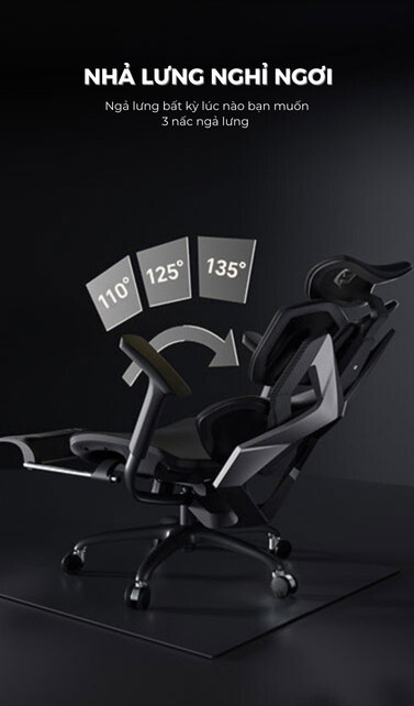 - Cơ chế ngả: Ngả lưng true title 3 cấp gồm tư thế làm việc và 2 nấc ngả tối đa 139 độ có khóa ngả