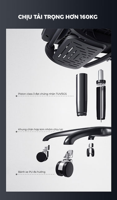 - Chất liệu chân: Chân hợp kim nhôm bền bỉ chống rỉ