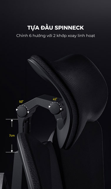 - Tựa đầu: SpinNeck – Tựa cổ 6 hướng với 2 khớp xoay tròn, cho phép điều chỉnh tối đa để ôm sát từng chuyển động của cổ và vai gáy.