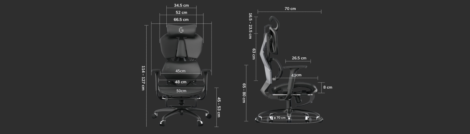 Bản vẽ kích thước của ghế cho bạn nếu cần, bao gồm cả kích thước hộp và trọng lượng của ghế.