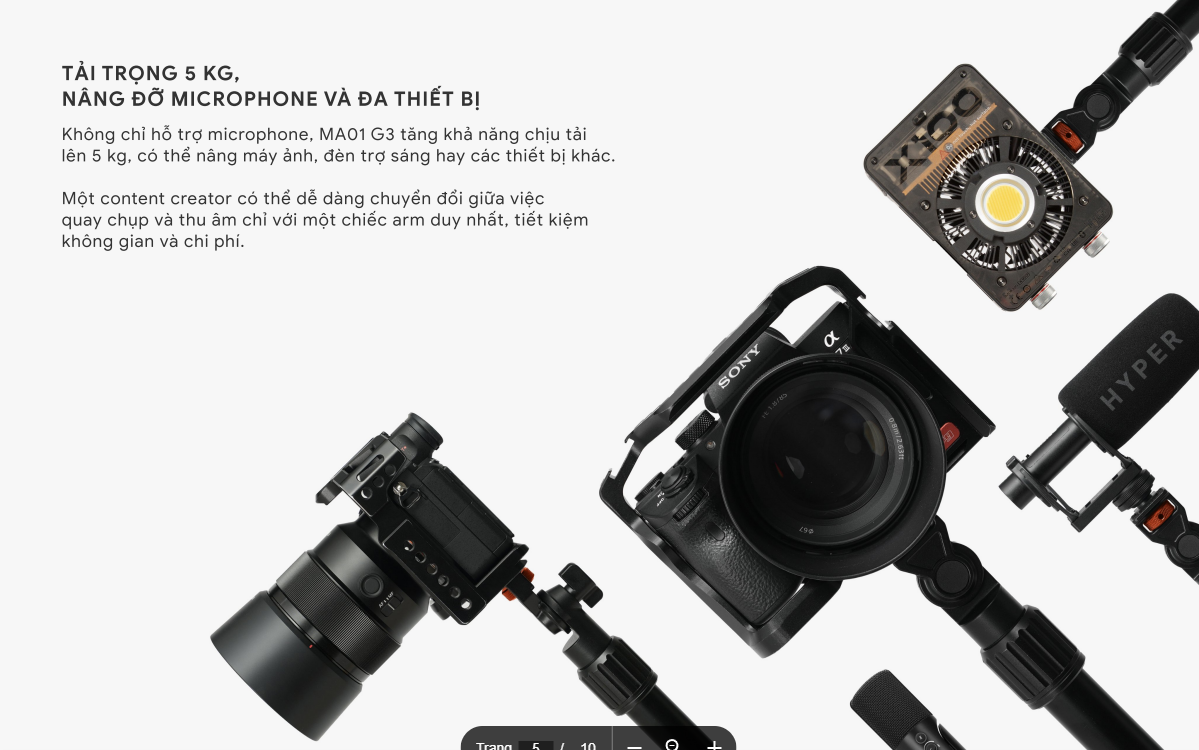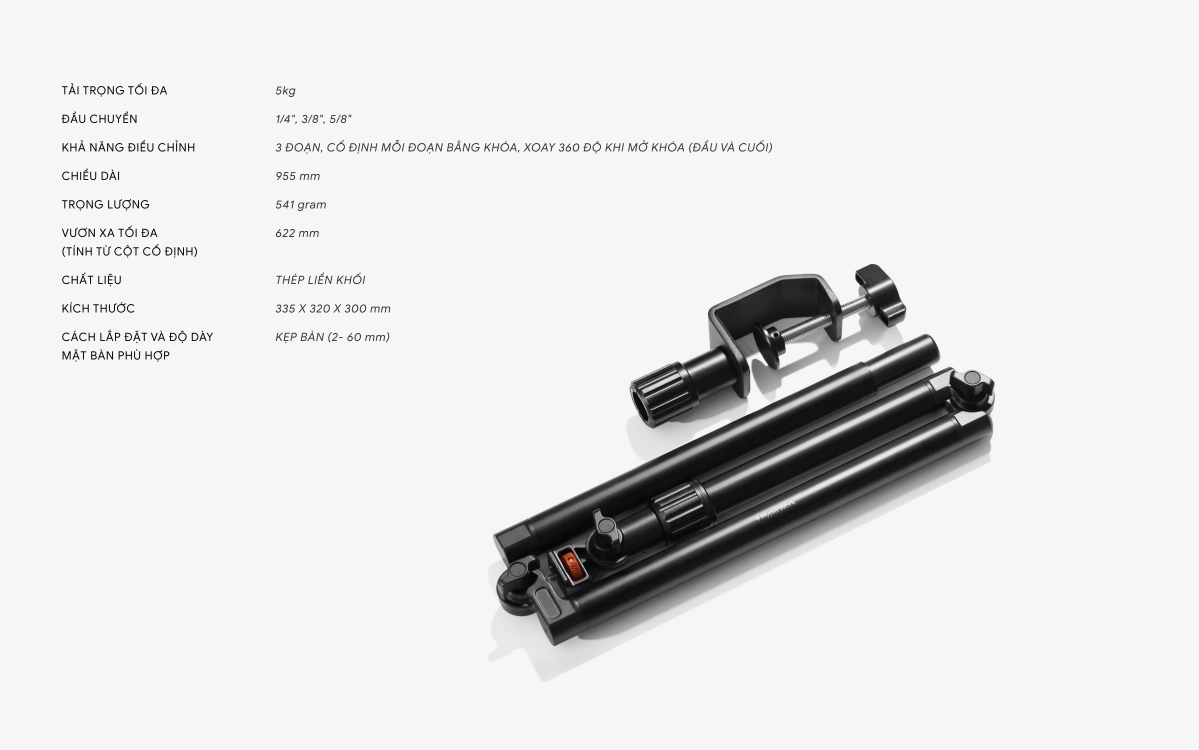 - Tải trọng lên đến 5 kg, vượt trội so với các thế hệ arm mic cũ