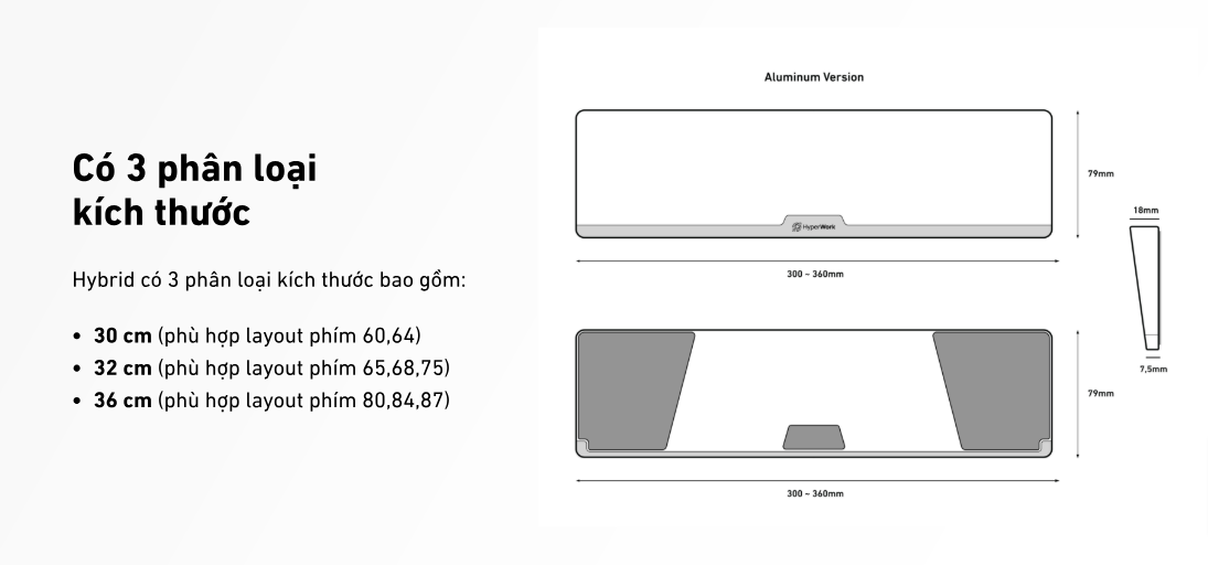 Kê tay bàn phím HyperWork Hybrid - gỗ kết hợp nhôm CNC