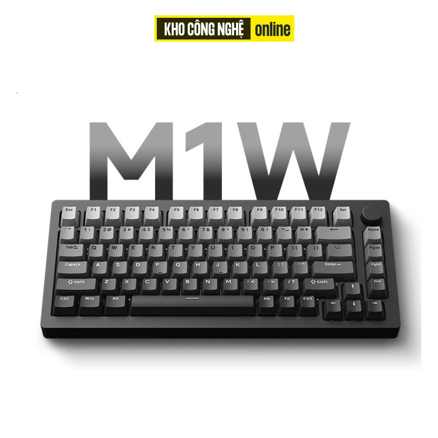 - Monsgeek M1W là bàn phím có layout 75% nhỏ gọn với kiểu dáng đẹp mắt và cách bố trí phím đa chức năng thuận tiện với tổng cộng số phím 82 phím và 1 núm xoay. Monsgeek M1W có các tùy chọn kết nối ba chế độ, bao gồm Bluetooth, Wireless 2.4GHz và kết nối có dây. Bàn phím được chế tạo bằng lớp vỏ hợp kim nhôm bền, nhẹ và chắc chắn. Nó có sẵn 3 phiên bản màu khác nhau là Purple, Silver và Black. Keycaps PBT doubleshot theo chủ đề gradient rất đẹp mắt khi nhìn vào bộ keycap của Monsgeek M1W