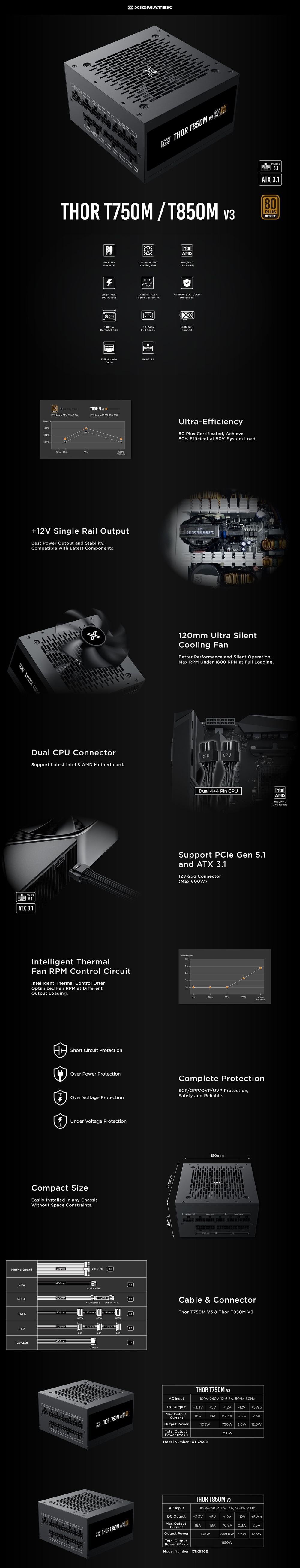- CỔNG KẾT NỐI: 20+4pin * 1 / CPU 4+4pin * 2 / PCI-E Gen 5.1 *1 / PCI-E 6+2pin * 4 / SATA * 6 / Molex 4pin * 3