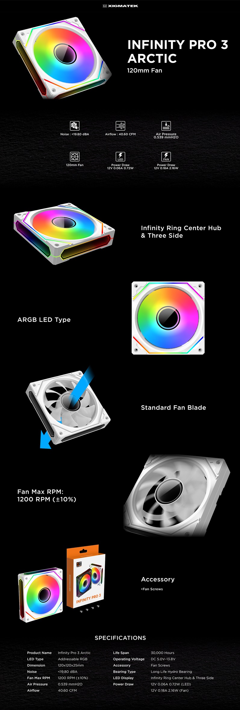 Quạt Tản Nhiệt XIGMATEK INFINITY PRO 3 ARCTIC