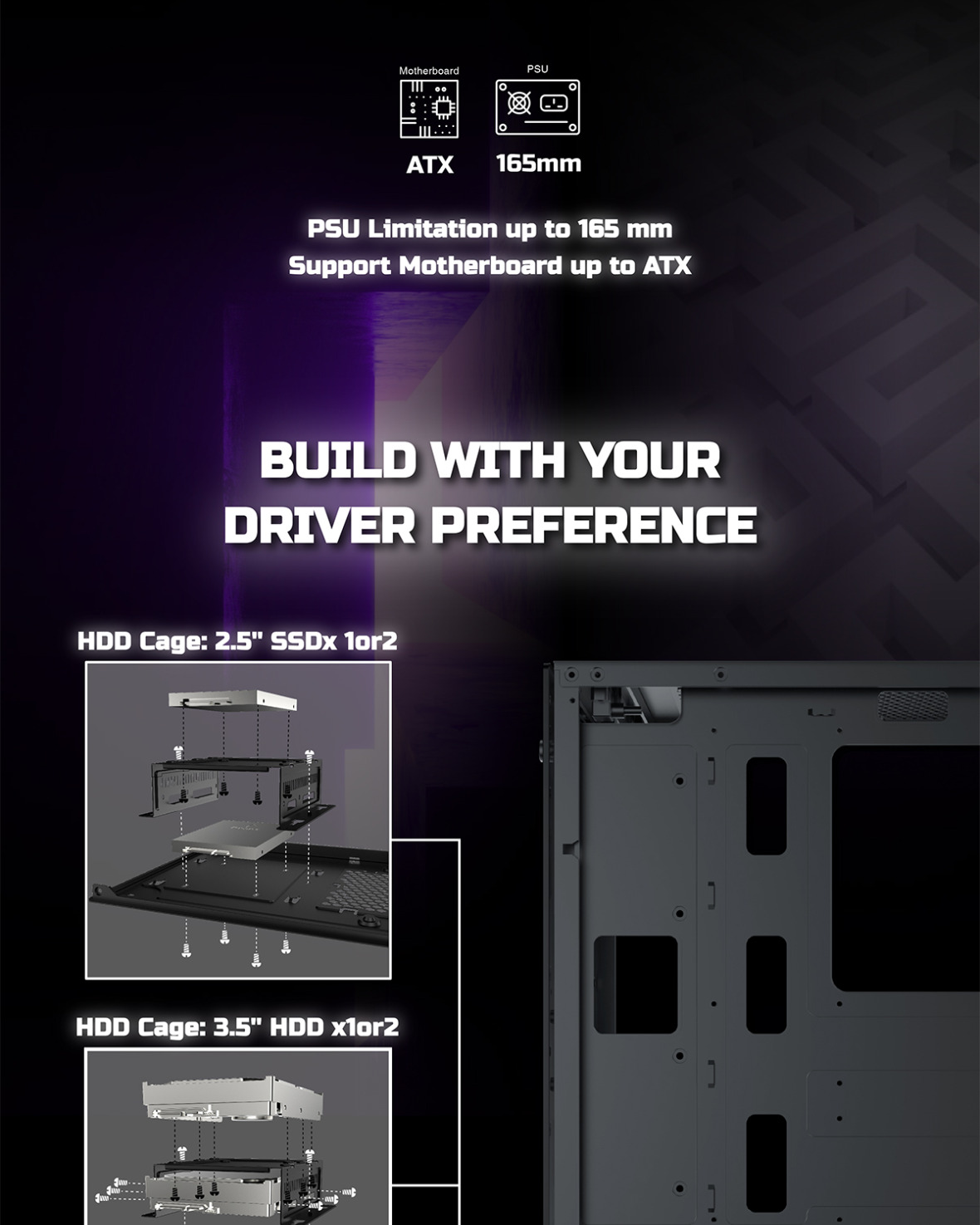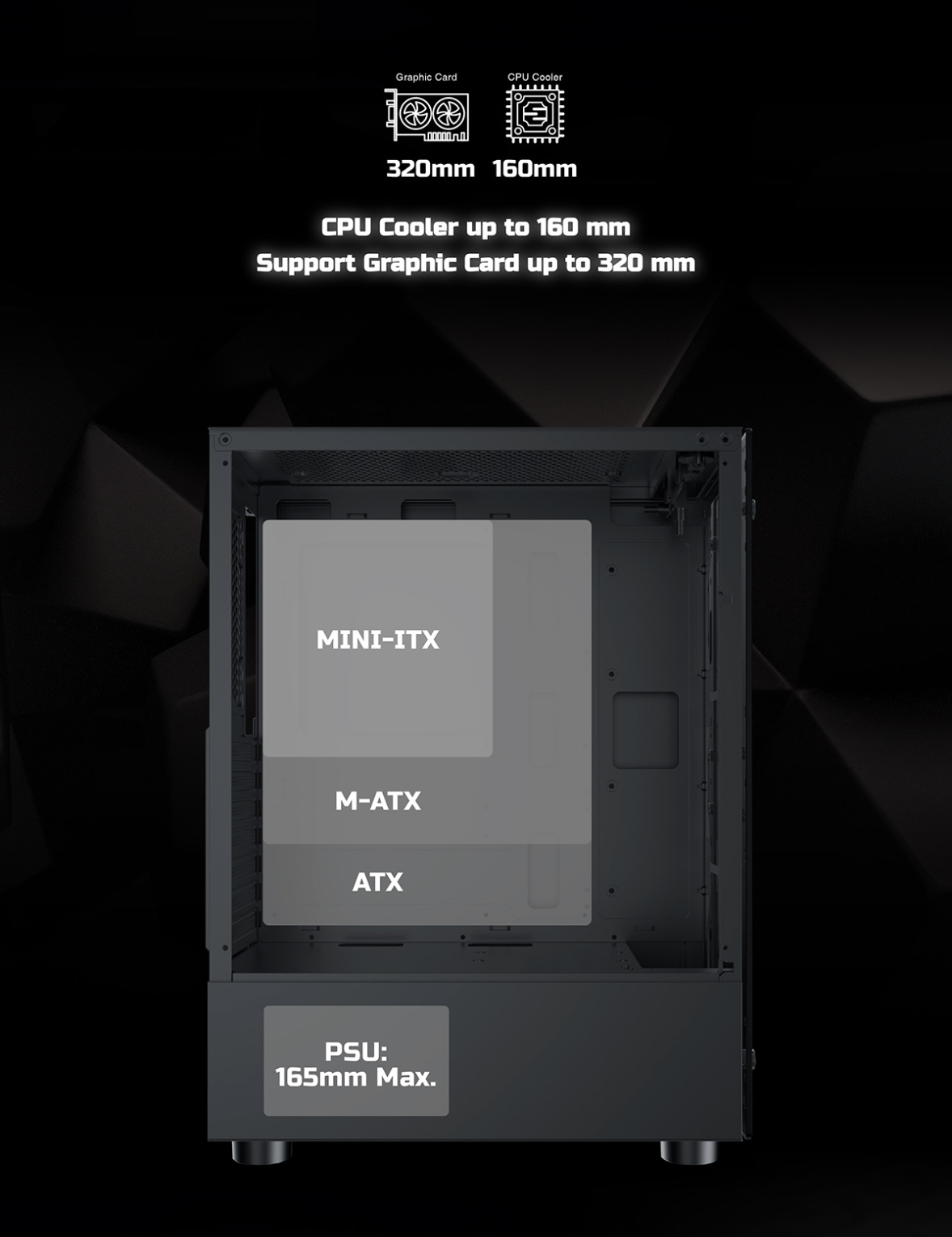 - Hỗ trợ Mainboard: ATX, Micro-ATX, ITX