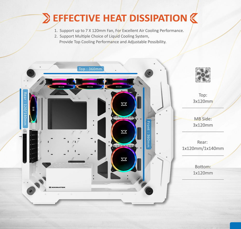 Vỏ Case Máy Tính XIGMATEK X7 WHITE (EN46225) - PREMIUM GAMING E-ATX (Hàng Chính Hãng)