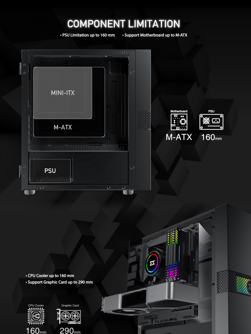 - Hỗ trợ Mainboard: Micro-ATX, ITX