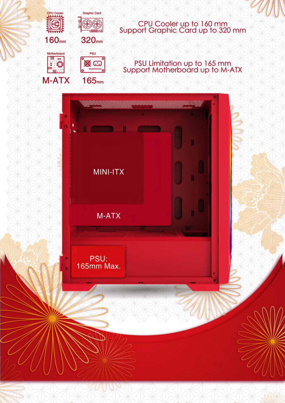 - Hỗ trợ tản nhiệt CPU 160mm